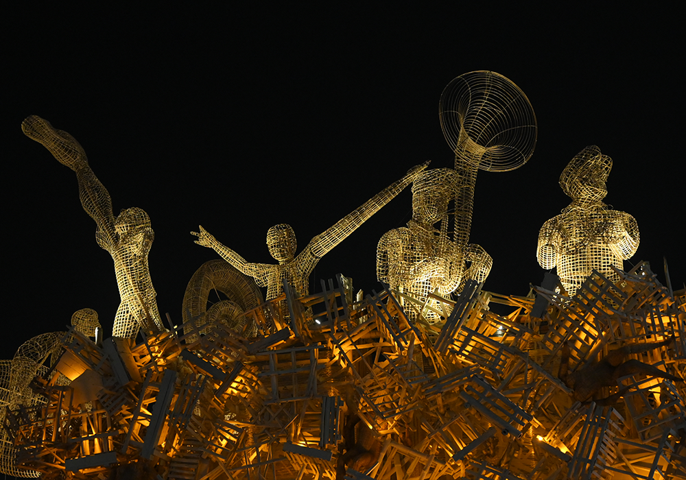 The grand illuminated view of the pandal and idol. The final illuminated look of the pandal captured everyone’s hearts — a breathtaking blend of art, devotion, and light.